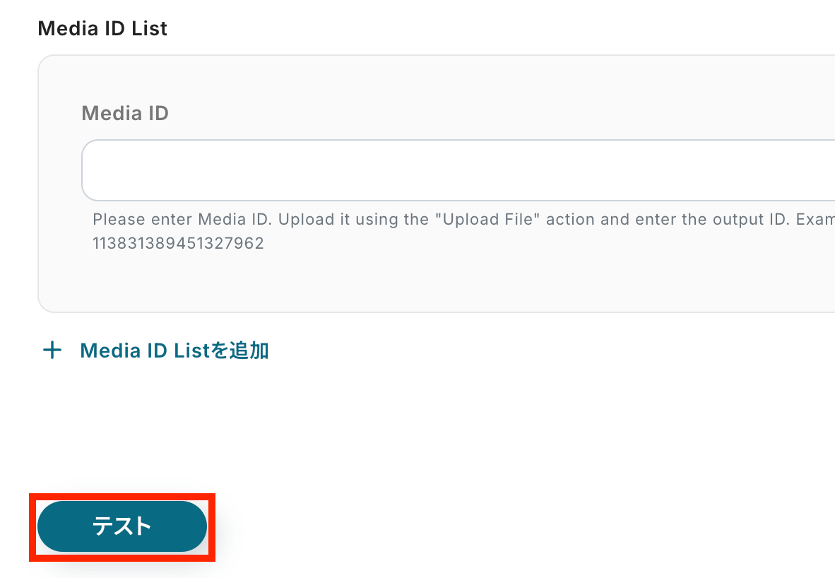 Yoomの設定画面に戻って、取得したAPI keyを入力しましょう! 任意で希望のリードリストを選択したら、「テスト」ボタンを押します。