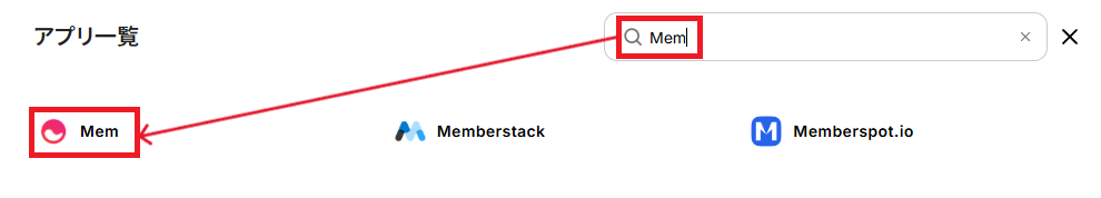 先ほどと同様に、アプリ一覧の検索窓からMemを検索しクリックします。