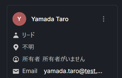 次に、アプリトリガーを動かすためにIntercom上でテスト用のリードコンタクトを新たに作成します。今回は例として、以下のようなリードコンタクトを作成しました。