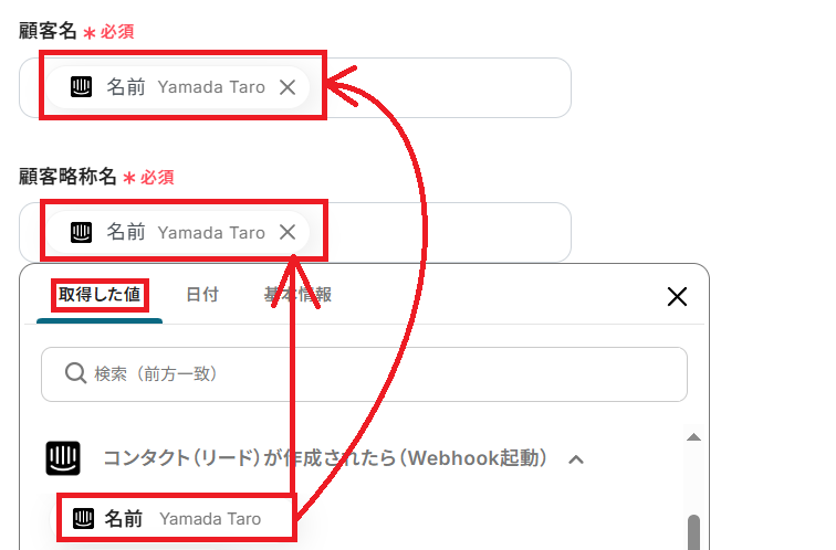 次に「顧客名」と「顧客略称名」を設定していきましょう。