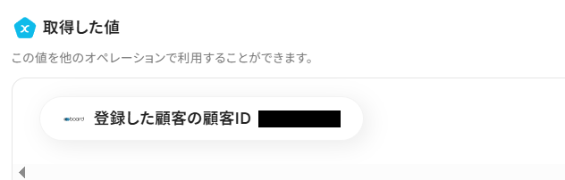 必要な設定が終わったら「テスト」を押してみましょう。取得した値にboardの「顧客ID」が表示されていたら成功です!
