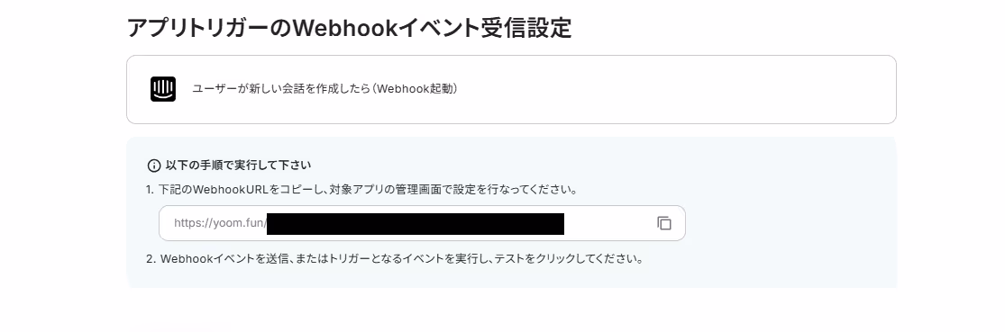 「ユーザーが新しい会話を作成したら(Webhook起動)」ボタンを押してください。