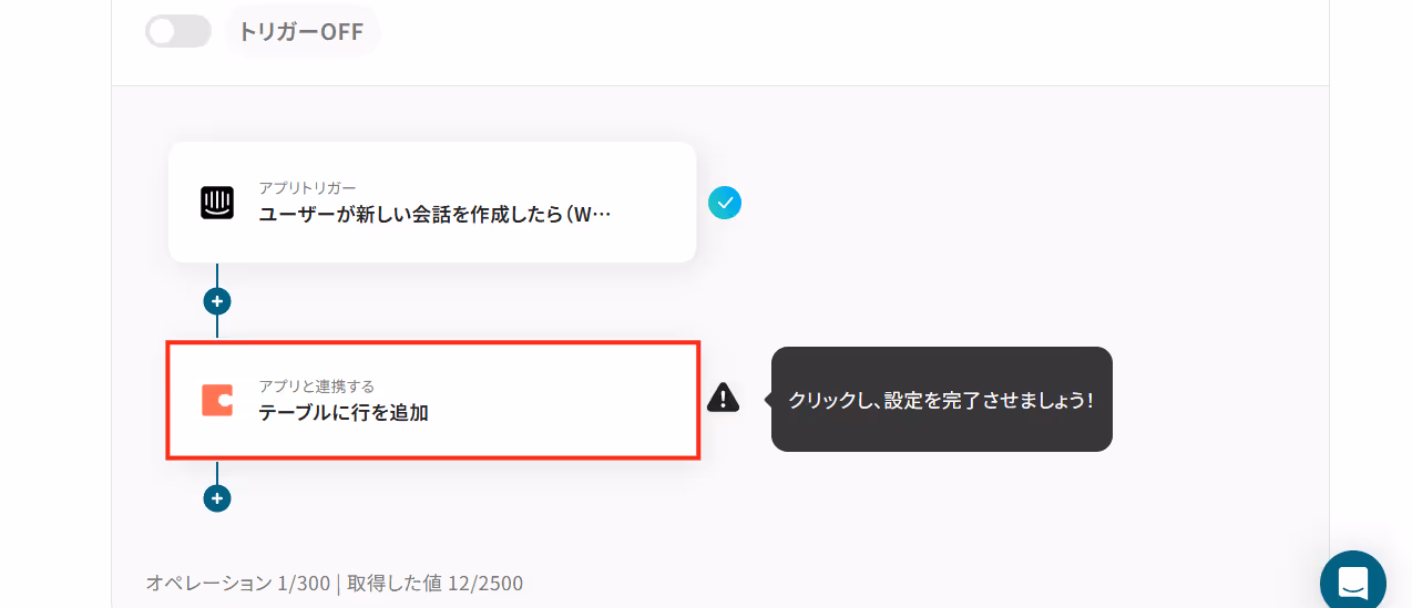 これで、「Intercomでユーザーが新しい会話を作成したら、Codaのテーブルに行を追加する」フローの完成です!