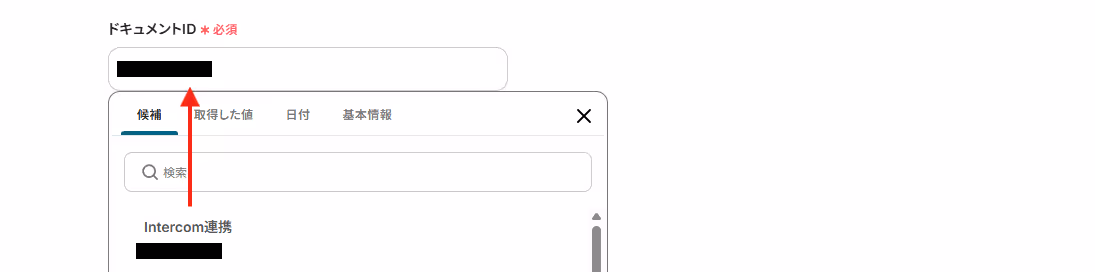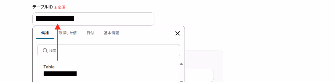 ドキュメントIDとテーブルIDは、枠内をクリックし表示される候補から選択しましょう。