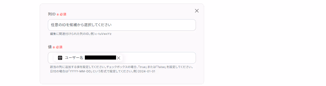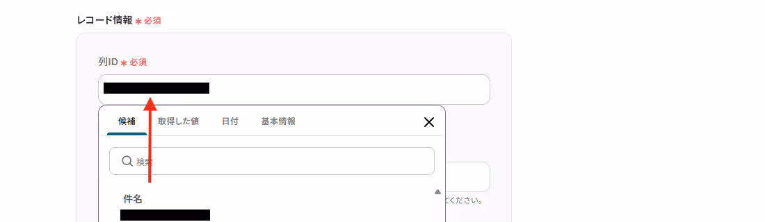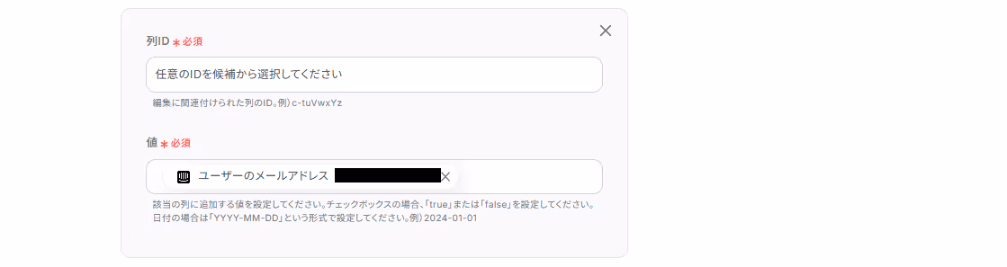 Codaで作成したテーブルの列の使用したい「列ID」を候補から選択しましょう。