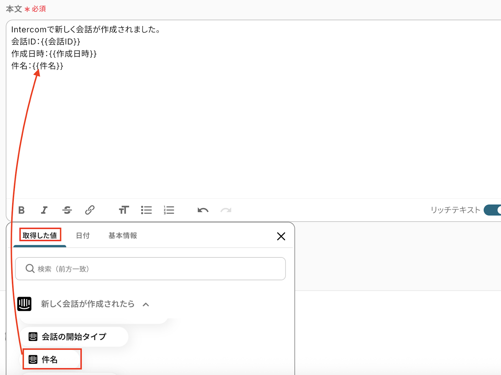 内容は、Intercomで取得した値を活用しながら作成しましょう!