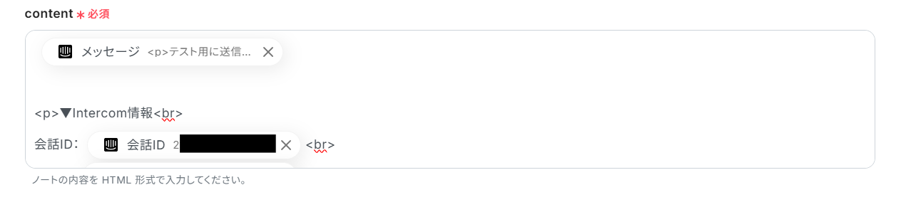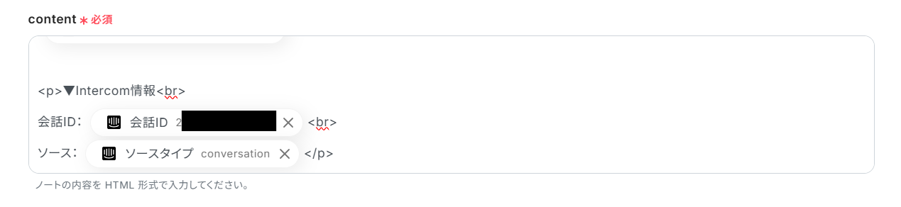 ・IntercomのWebhookの設定方法はトリガー内の注意事項および下記をご参照ください。