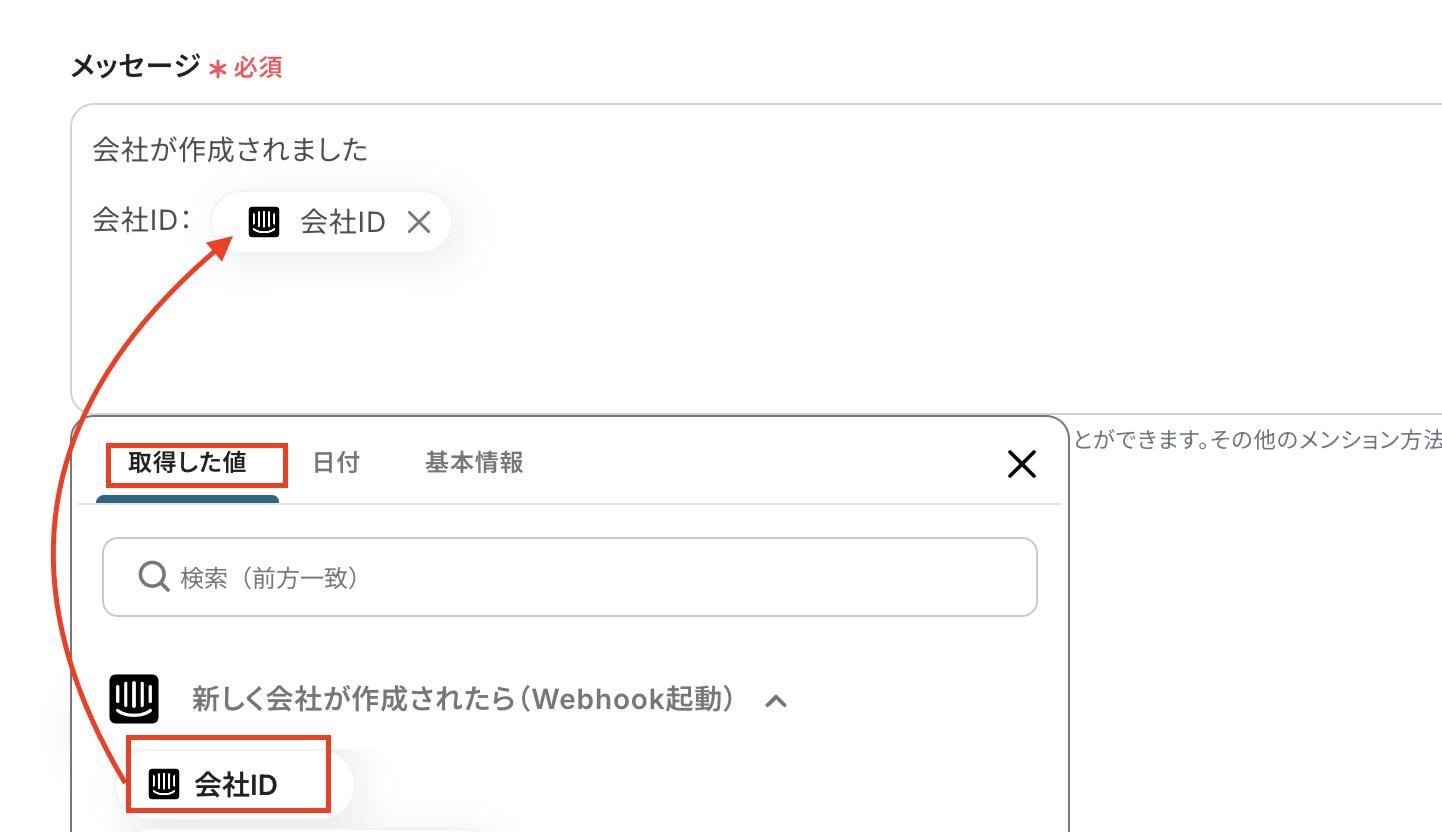 例えば、Intercomに新しい会社情報が登録された際に、その詳細を即座にSlackの指定チャンネルへ通知することが可能になり、担当者の確認漏れや対応の遅れを防ぎますよ!