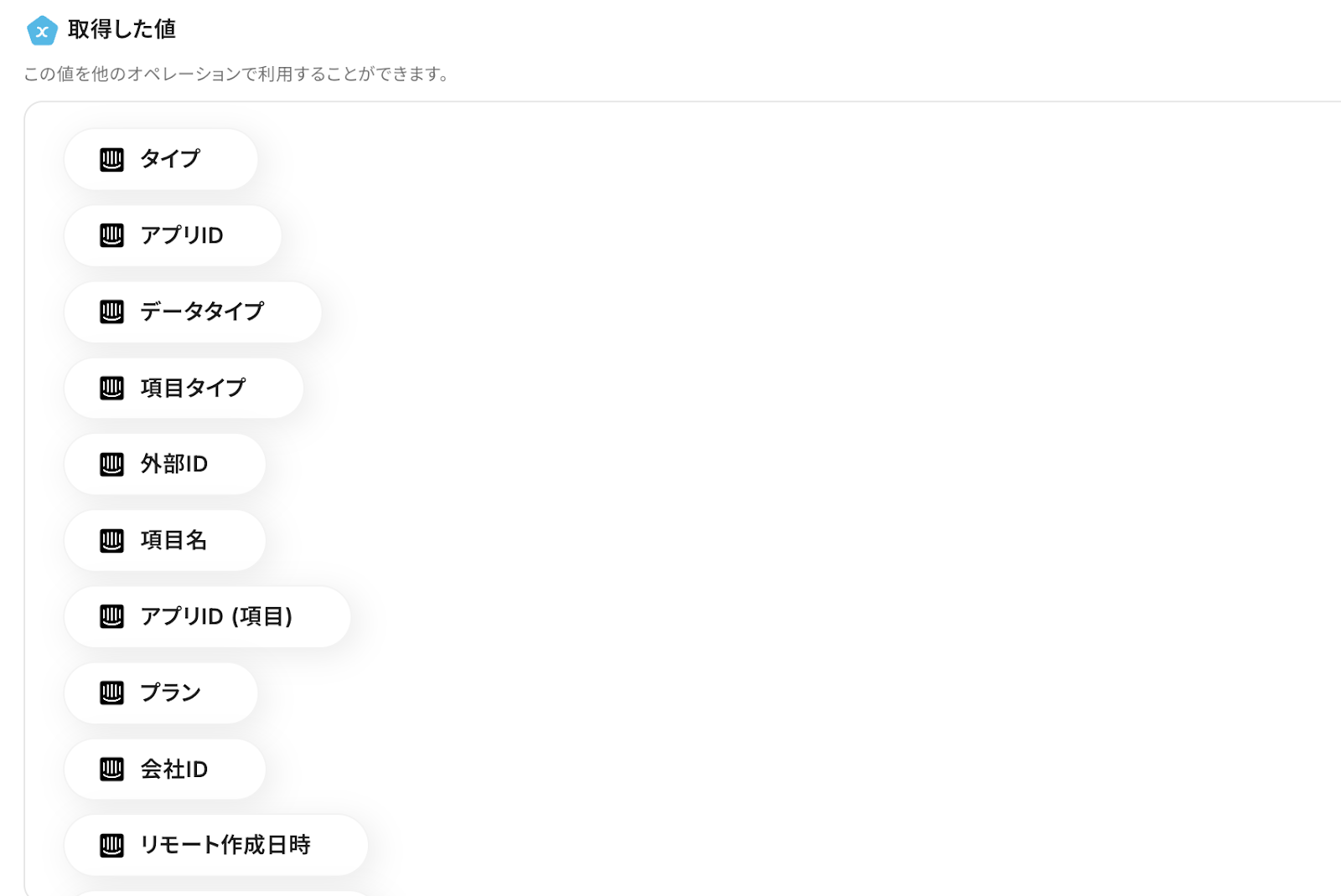 ここでは情報が空になっていますが、テストが成功したら、Intercomの取得した値に情報が追加されます。