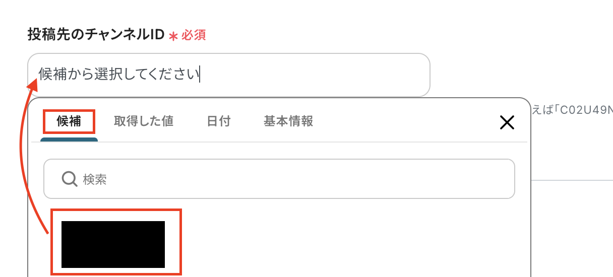 投稿先のチャンネルIDは候補から選択してください。