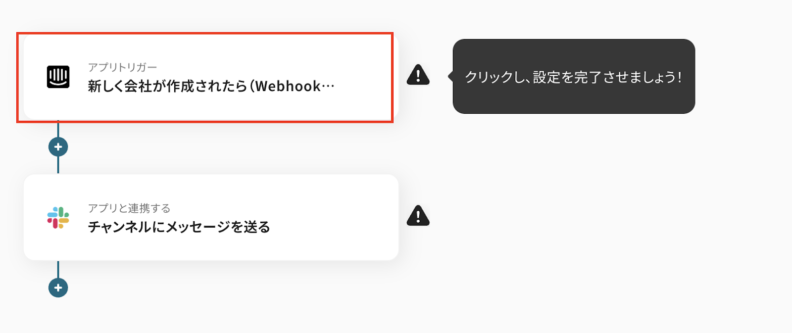 先ほどコピーしたテンプレートの「新しく会社が作成されたら(Webhook起動)」をクリックしてください。