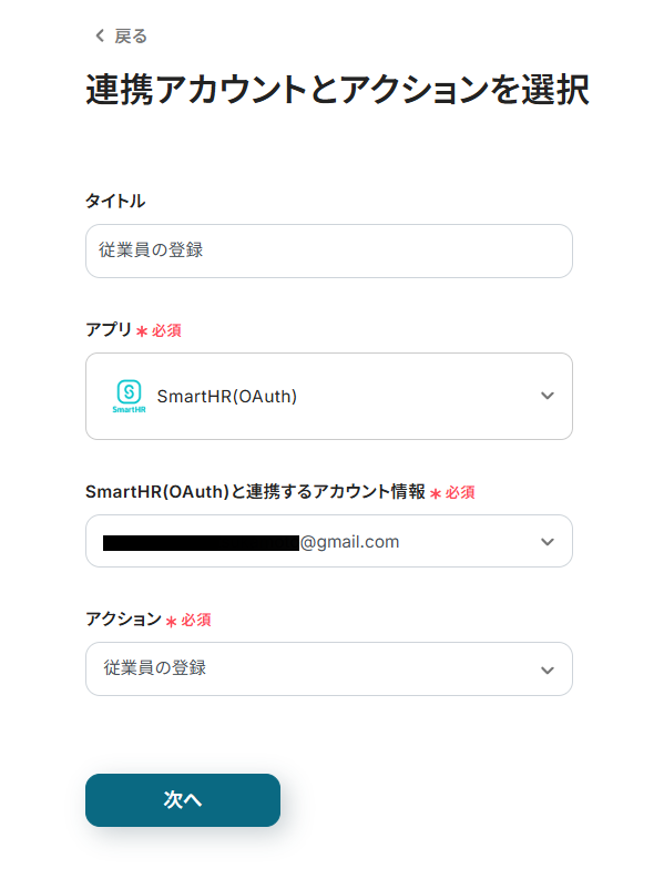 フォームの情報をもとに、SmartHRで従業員情報を登録する