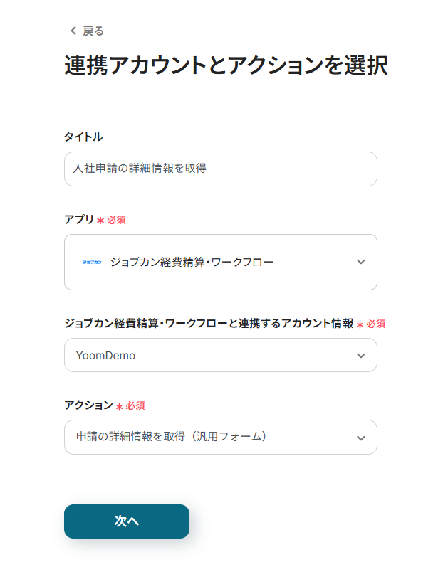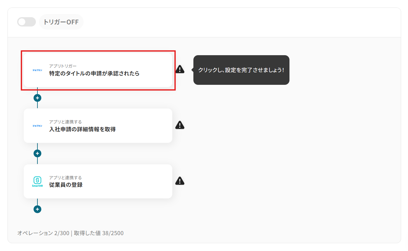 この記事では、先程ご紹介した「ジョブカン経費精算・ワークフローで申請が承認されたらSmartHRに新規ユーザーを登録」フローを作成します。