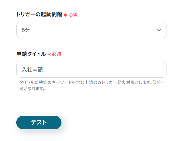 - 事前準備で用意した入社申請用フォームでテスト用の申請を作成し、承認してください。