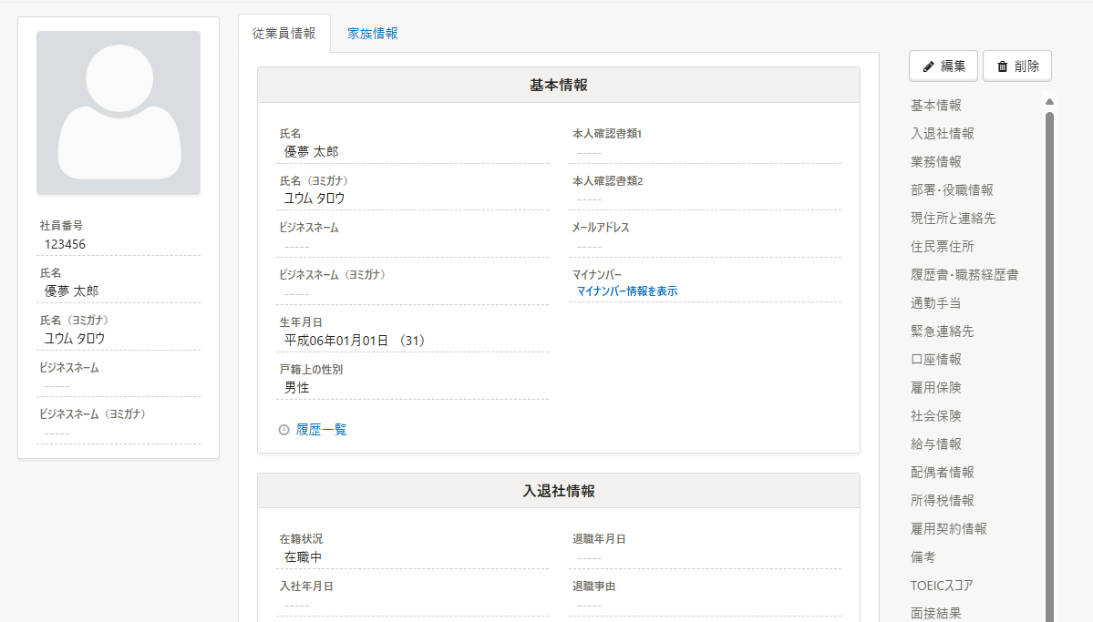 手動でのデータ入力作業が不要になり、迅速かつ正確に従業員情報を管理できます。