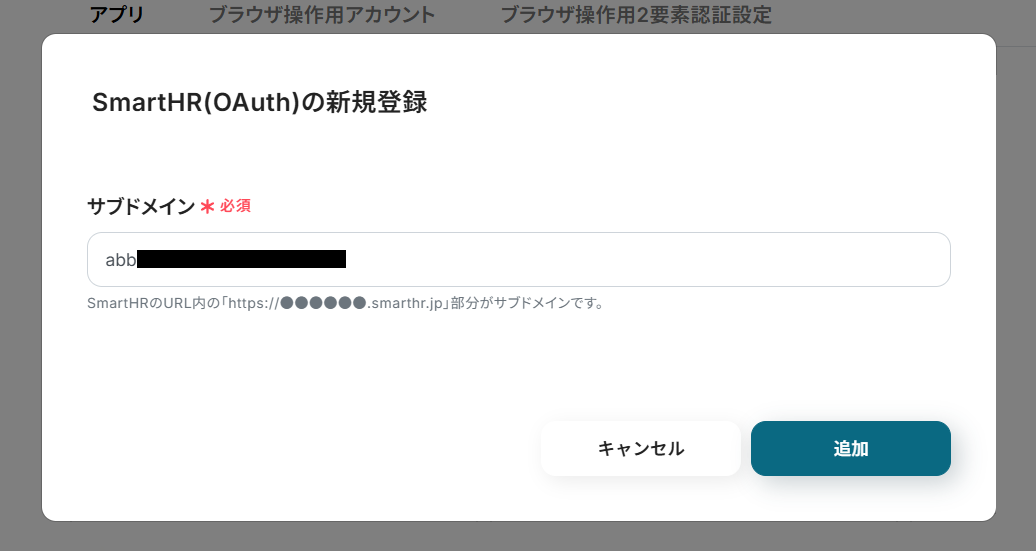 - 「サブドメイン」をSmartHRの管理画面のURL(https://≪サブドメイン≫.smarthr.jp)から取得して設定してください。