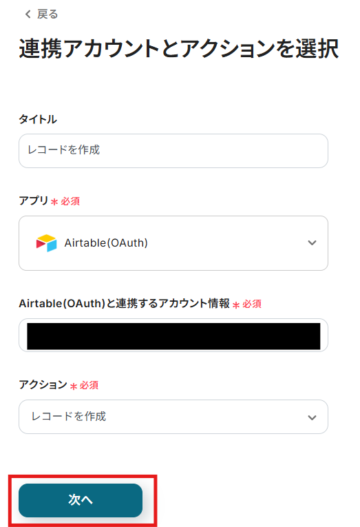 こちらも、ステップ1でマイアプリ連携したアカウント情報が自動で表示されます。