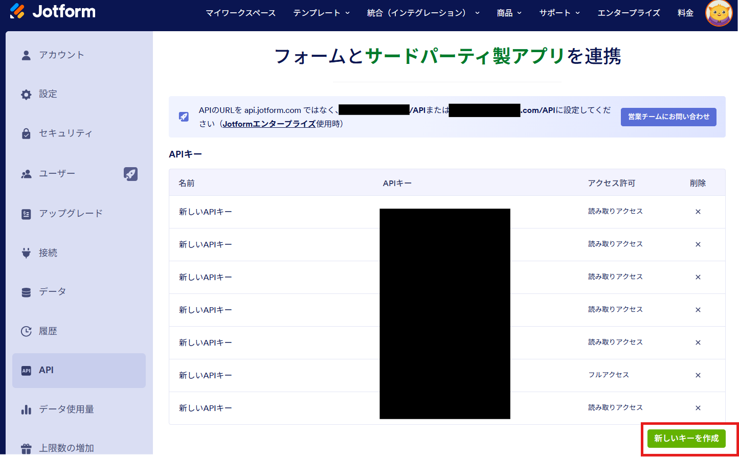 下記の「JotformのWebhook設定方法」を参考にして、Webhookを設定してください。