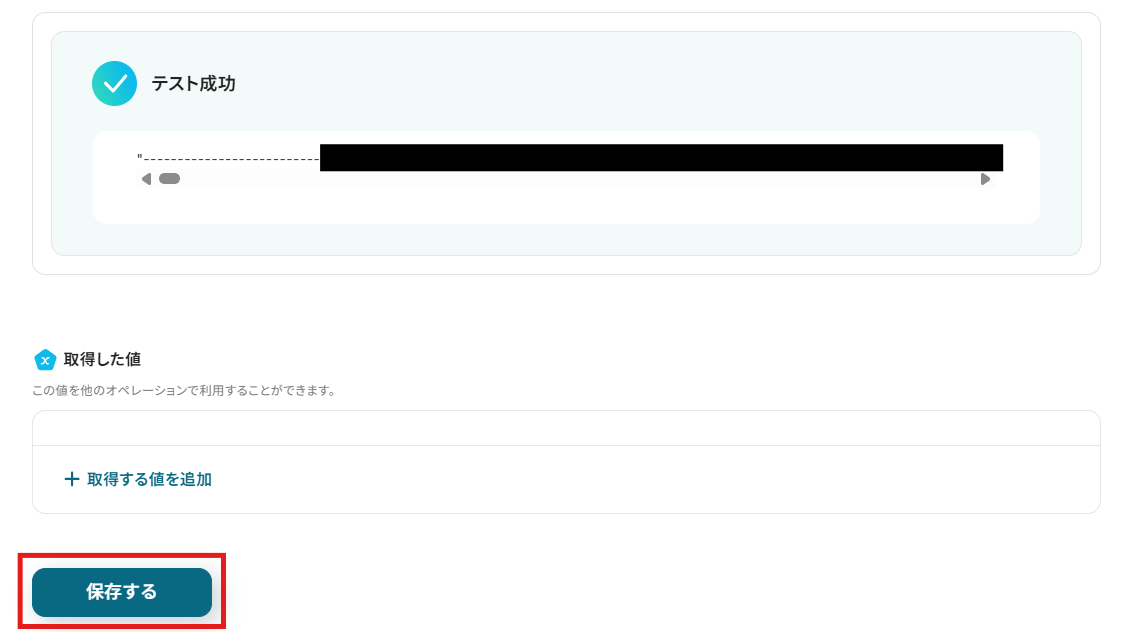 「取得する値を追加」をクリックし、取得した値を追加しましょう。