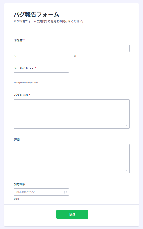 今回は、以下のようにフォームを作成してみましたので、ぜひ参考にしてください!