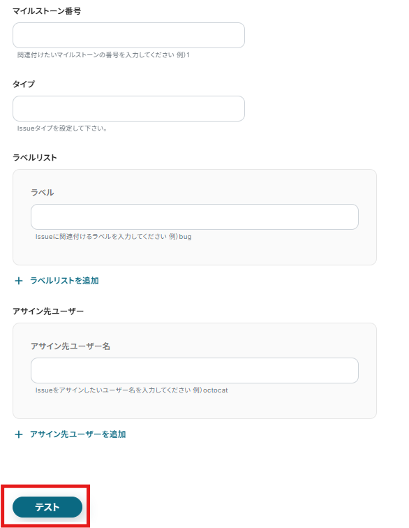 最後に、Jotformに送信された情報を基にGitHubにIssueを作成する設定を行います。