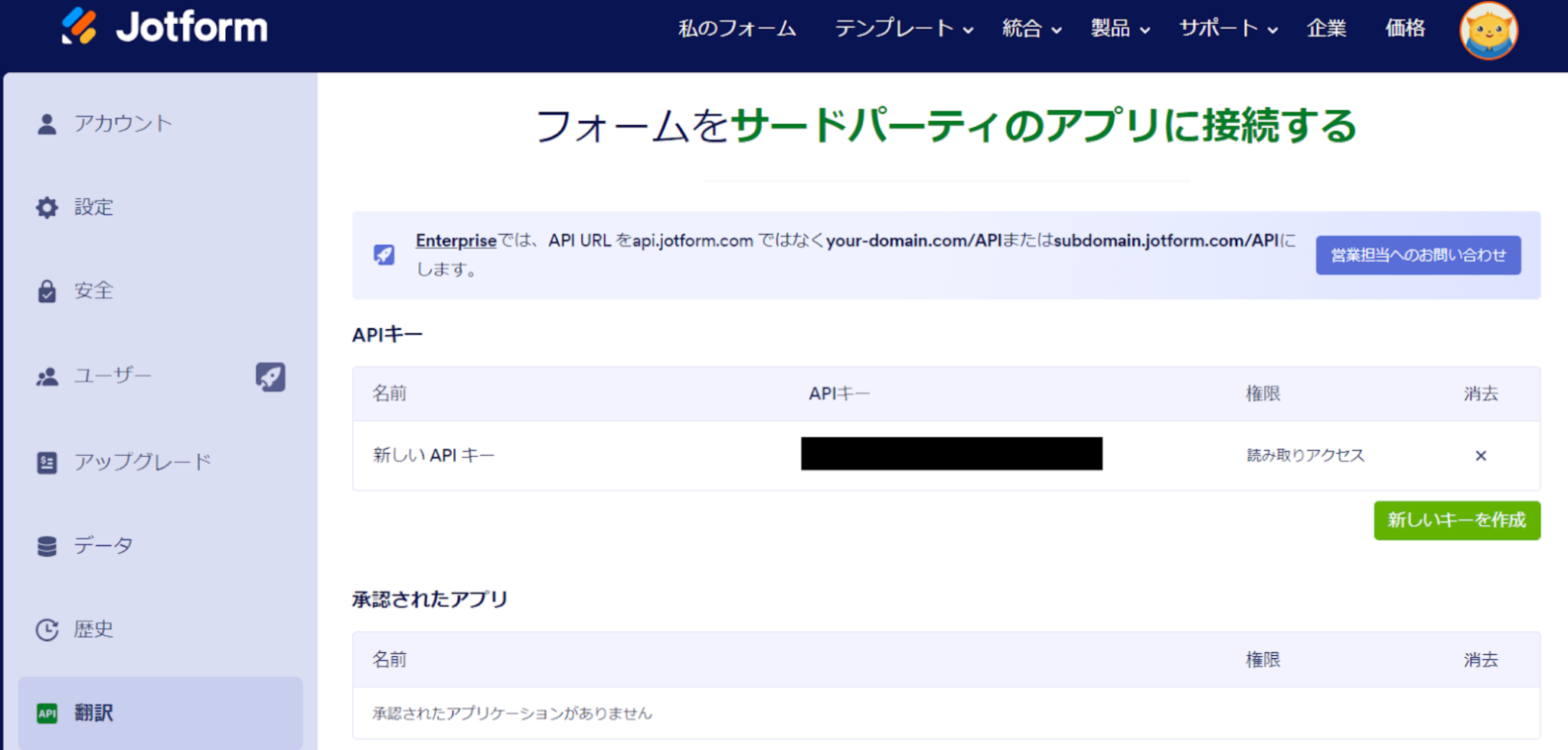 ※Jotformの以下の画面から確認可能です。