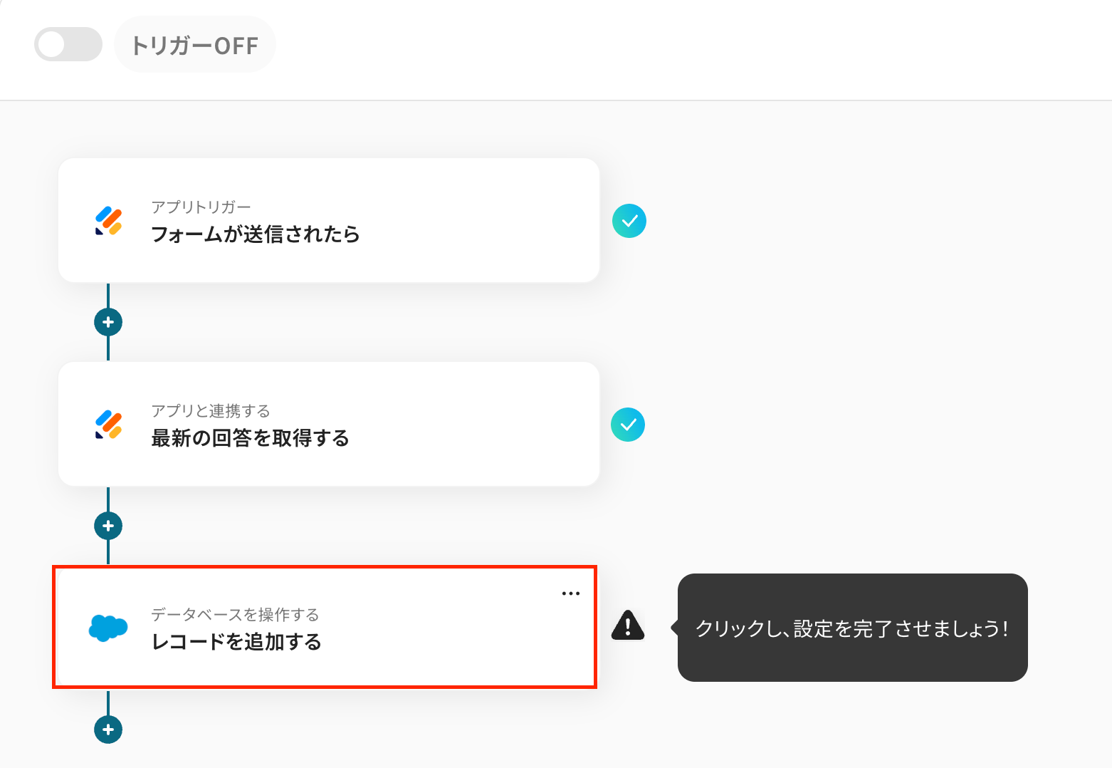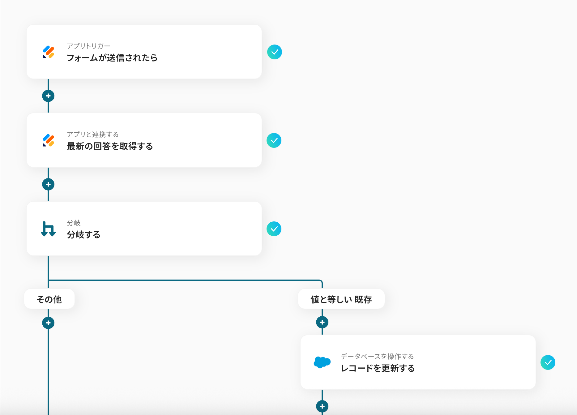この連携を活用すれば、Jotformの回答内容に応じて特定の条件に合致する回答のみを抽出し、自動でSalesforceにレコードとして追加することが可能です。
