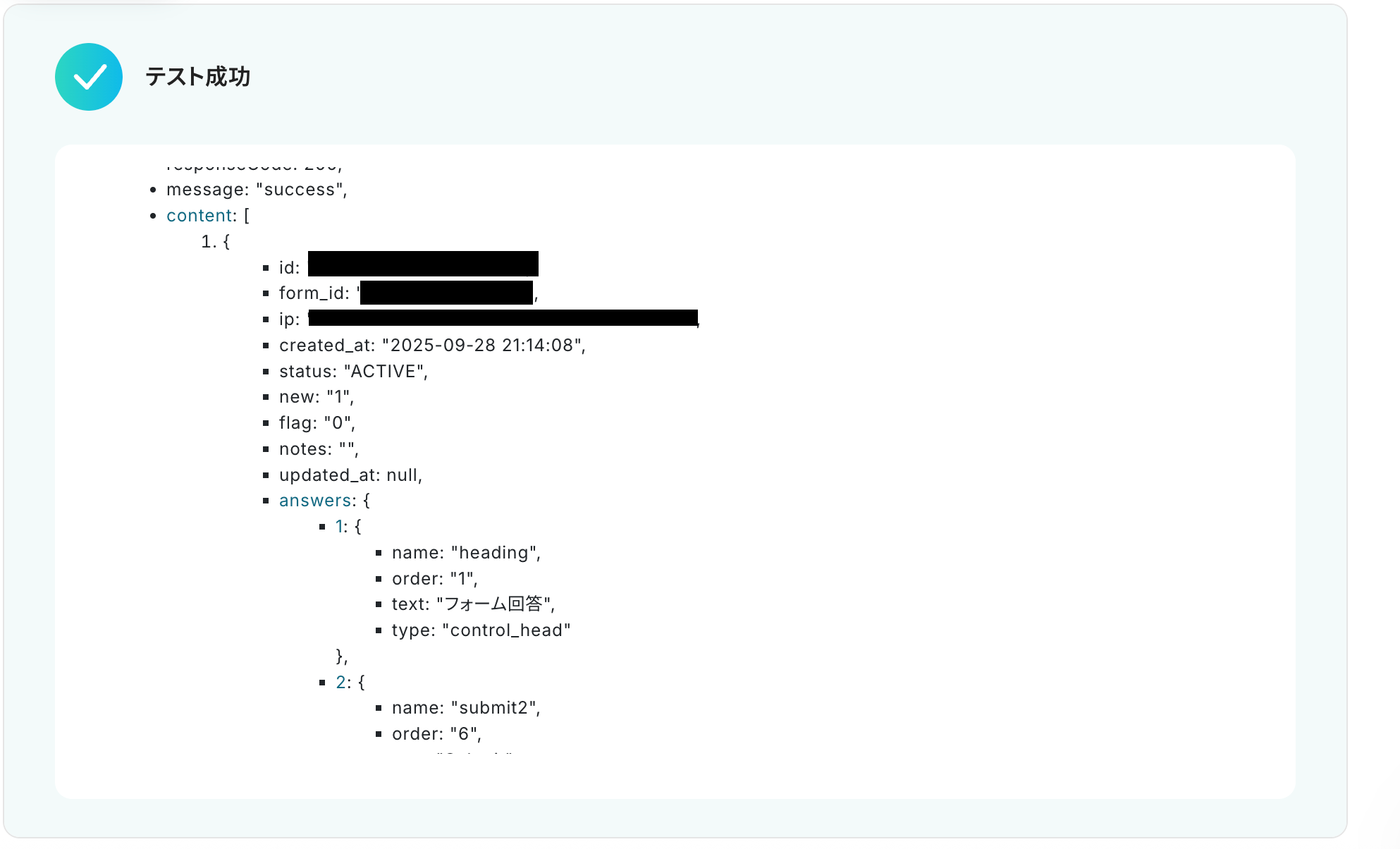 設定できたら、Jotformでトリガー(フォームが送信されたら)を実行してください。