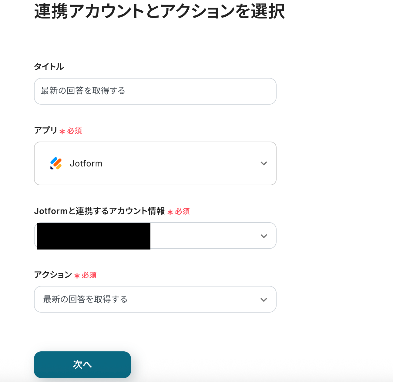 ステップ4: Jotformのアクションを設定しよう(最新の回答を取得する)
