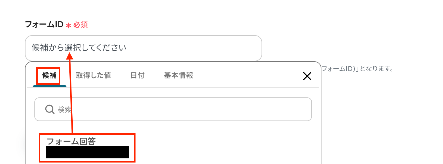 フォームIDは候補から選択するか、JotformのURLを確認し入力しましょう。