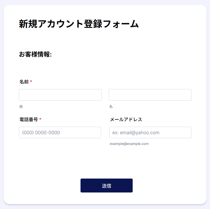 今回は、以下のようなフォームを作成したので、ぜひ参考にしてください!