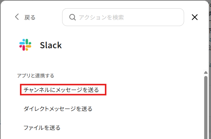 3.「チャンネルにメッセージを送る」を選択します。