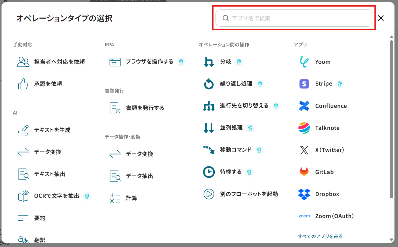- はじめに、StripeとNotionをYoomと連携します。