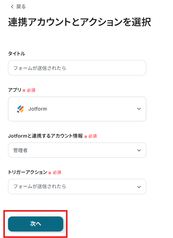 ステップ3:Jotformのトリガー設定