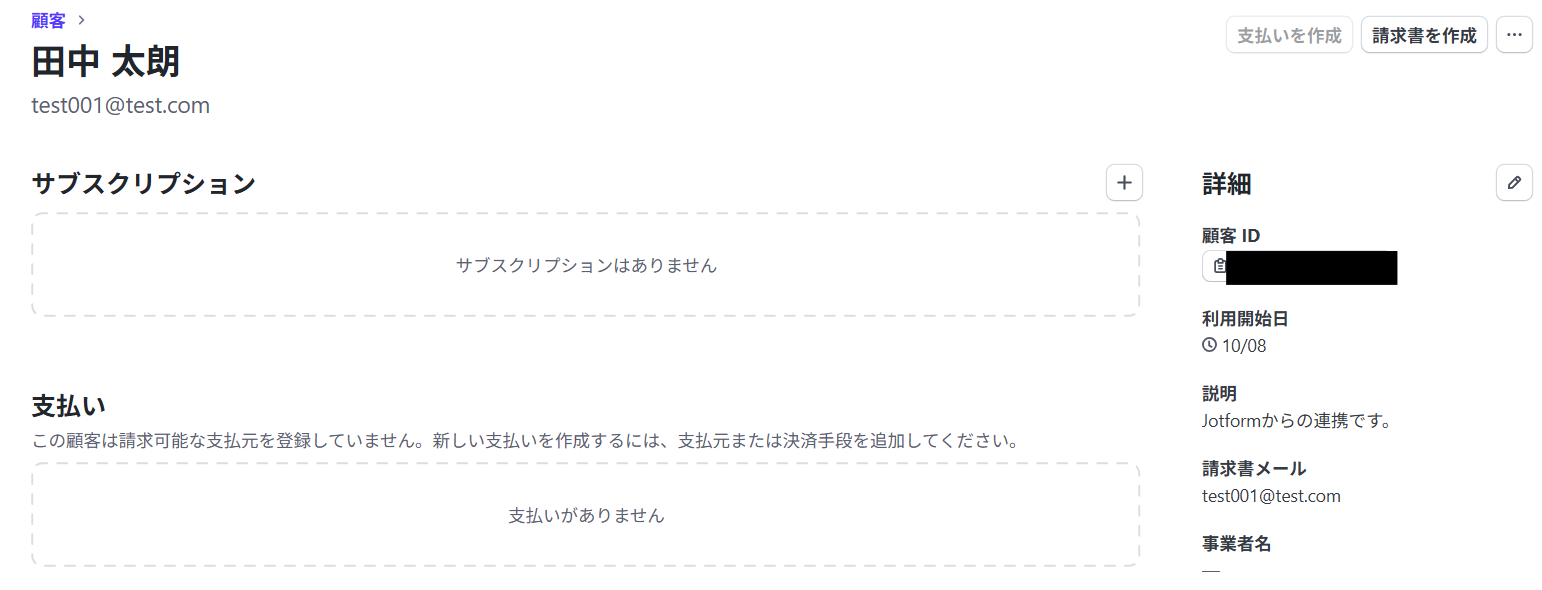 - Jotformで受け付けた情報を元に、Stripeで手動で顧客登録を行っている方