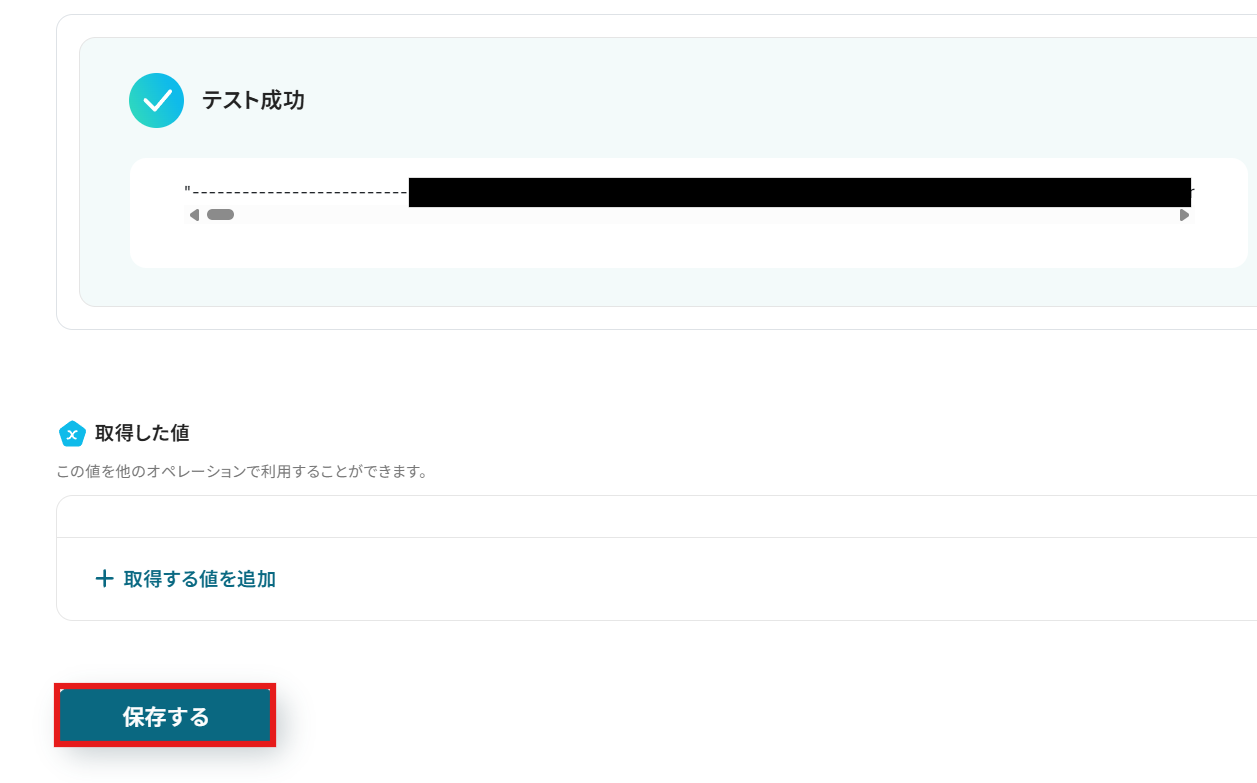 テストが成功したら、取得した値が表示されます。