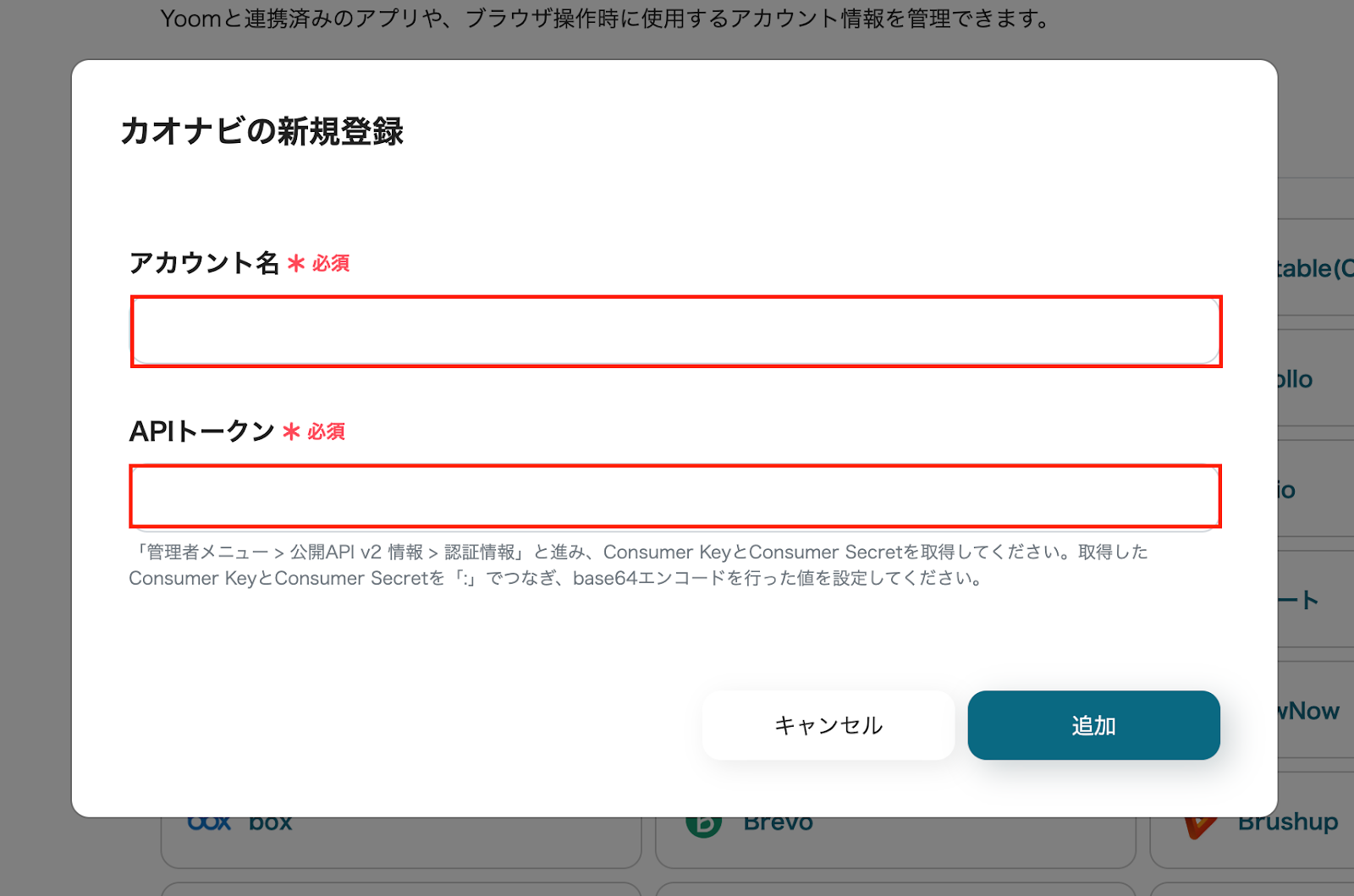 ・Box、カオナビのそれぞれとYoomを連携してください。