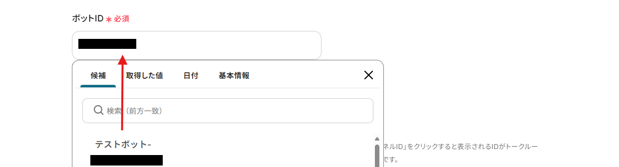 ボットIDは、枠内をクリックし表示される候補から選択してください。