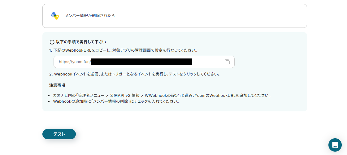 Yoomの画面に戻り、テストを実行しましょう。