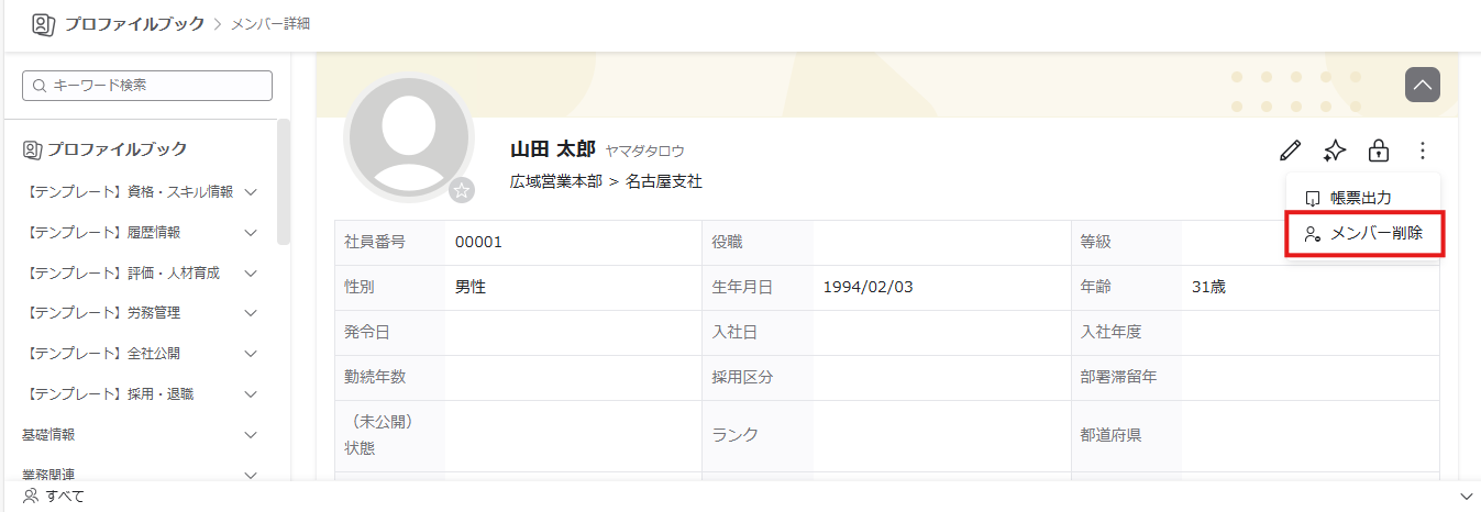 削除したメンバーの社員番号が取得した値に表示されるので誤りが無いか確認してください。