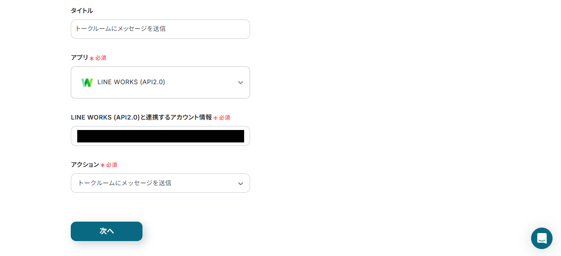 ステップ4:LINE WORKSのトークルームに自動でメッセージを送信する