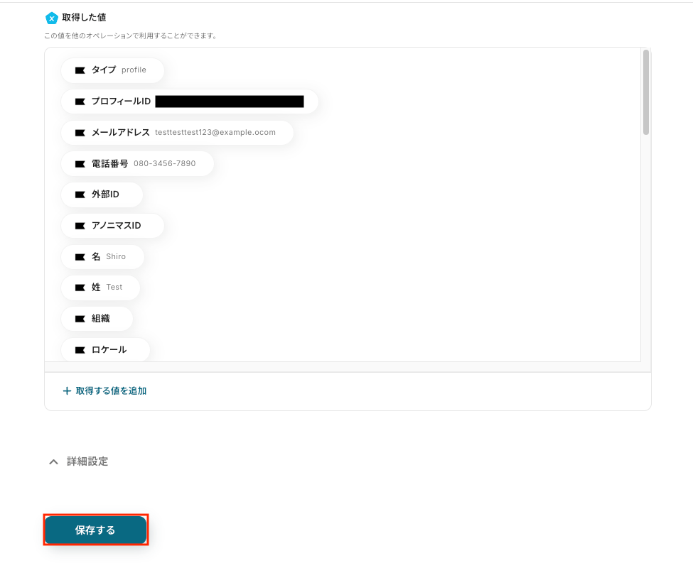 この作成したプロフィールがトリガーイベントとなり、自動化の起点となります。