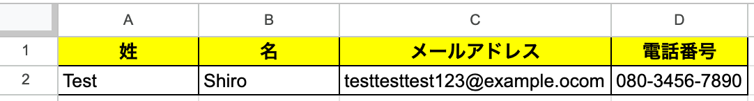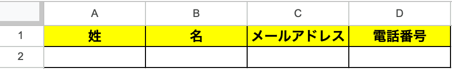 事前準備として、追加するレコードの項目に合わせてGoogle スプレッドシートで表を作成しておきましょう。