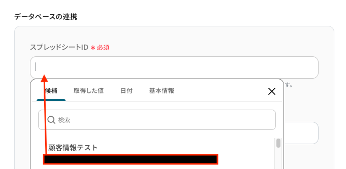 入力欄をクリックすると、指定したスプレッドシートIDに含まれるタブの候補が表示されます。