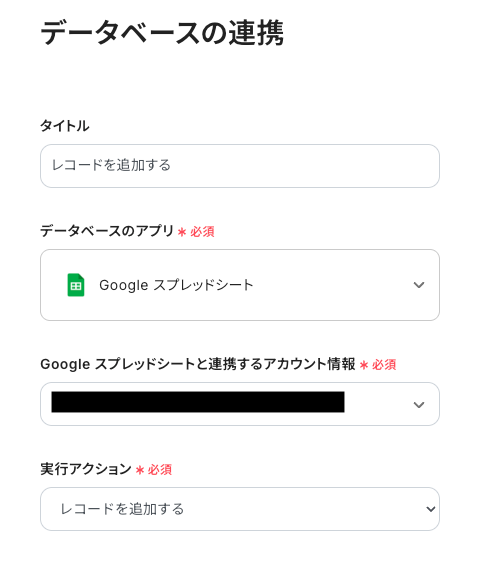ステップ4: Google スプレッドシートにレコード追加する設定