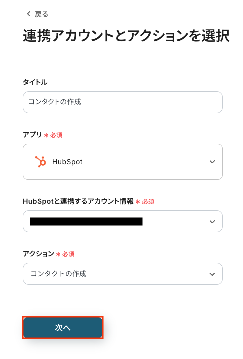 ステップ4: HubSpotのアクション設定