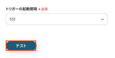 入力が完了したら、設定内容とトリガーの動作を確認するため「テスト」をクリックします。