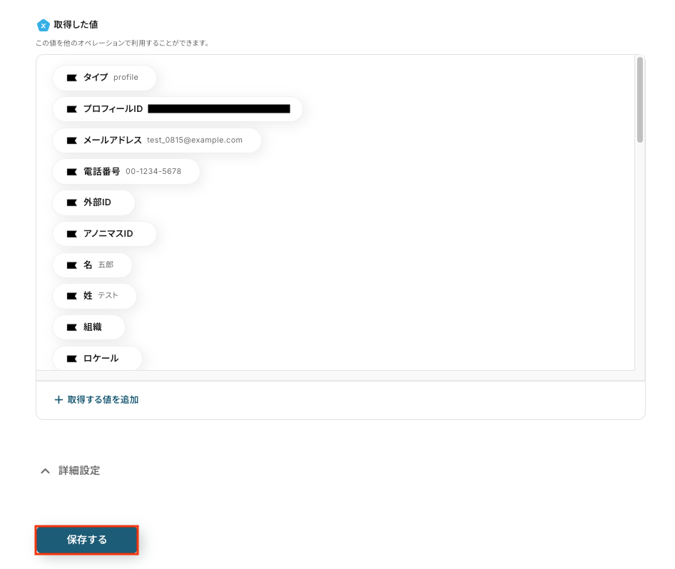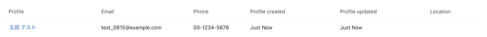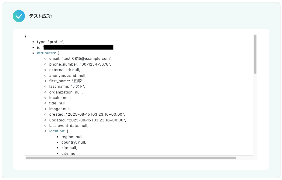 テストに成功すると、Klaviyoに作成されたプロフィールに関する情報が一覧で表示されます。