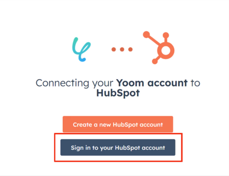 以下の画面が表示されるので、アカウントをお持ちの方は「Sign in to your HubSpot account」をクリックします。 詳しいマイアプリの登録方法については、こちら のヘルプページをご参照ください。