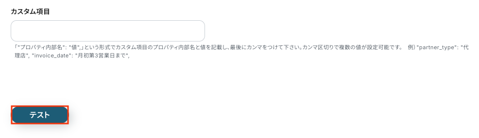 カスタム項目 標準項目以外のカスタムプロパティを登録したい場合は入力しましょう。 ※カスタムプロパティの値の取得方法について、詳しくはこちら をご確認ください。